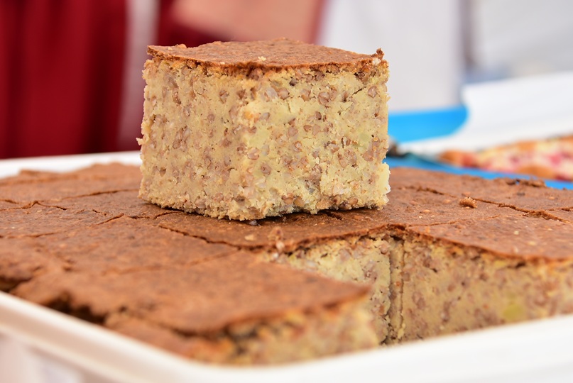 Kiedy pieróg trafia na stół, nie trzeba do niego zachęcać. Kroi go w grube, ciepłe plastry, które parują kaszą, ziemniakiem i miętą. Obok stawia dzbanek zimnej maślanki.