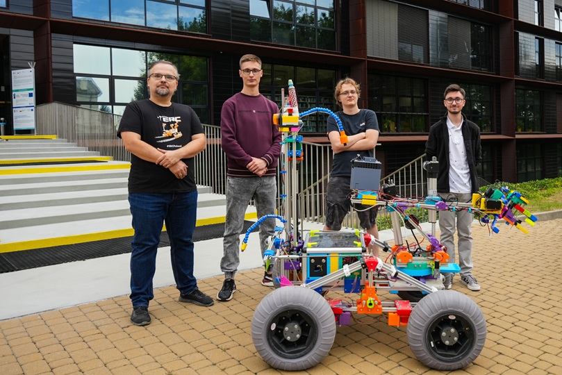 – Mam teraz najlepszą ekipę od lat – podkreśla dr Maciejewski. Zespół liczy 10–12 osób z mechatroniki i informatyki. W dwa lata zbudowali łazika od podstaw – od pierwszej śrubki po algorytmy nawigacyjne i aplikację sterującą.