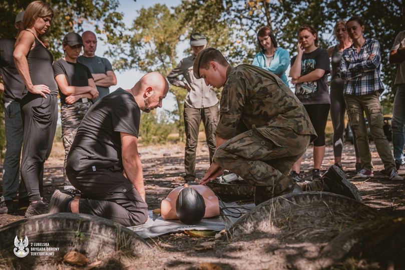 „Urzędnik nie tylko za biurkiem” – pod takim hasłem odbyło się szkolenie, które żołnierze 2 Lubelskiej Brygady Obrony Terytorialnej przeprowadzili dla pracowników Urzędu Marszałkowskiego Województwa Lubelskiego. W czwartek, 28 sierpnia, na poligonie na Majdanku ponad 60 urzędników uczestniczyło w zajęciach obejmujących podstawy strzelectwa, pierwszą pomoc przedmedyczną, orientację w terenie oraz obronę przed bronią masowego rażenia.