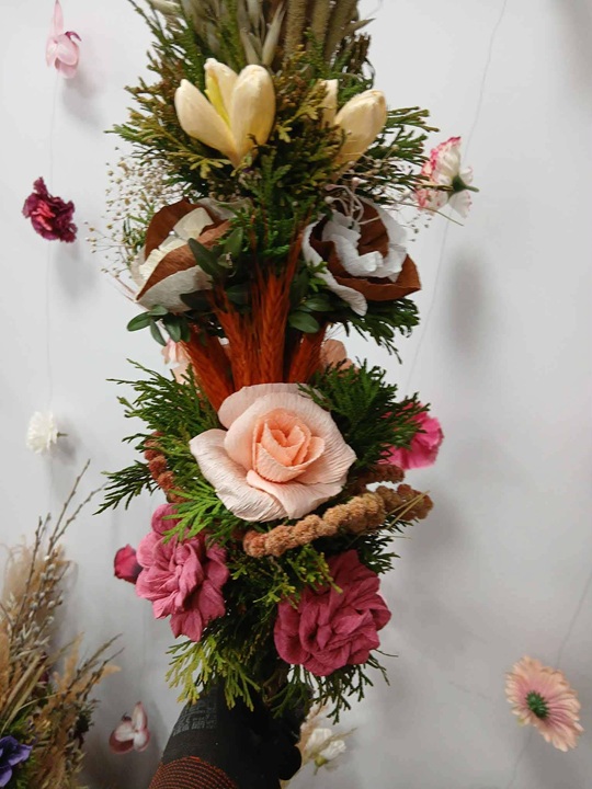 - Zatraciłyśmy się w robieniu tych kwiatów - mówi z uśmiechem - To wymaga cierpliwości i wyczucia. Każdy płatek formuje się ręcznie, dobiera kolory, układa kompozycję. Nie ma dwóch takich samych kwiatów.
