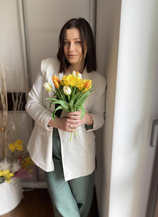 Wiosenne stylizacje naturalnie kierują się w stronę jaśniejszych, świeżych tonacji. Pojawiają się pastele, rozbielone kolory i spokojne zestawienia, które dobrze wpisują się w charakter świąt. Jednym z mocniejszych akcentów sezonu jest żółty - w różnych odcieniach, od delikatnego po bardziej intensywny. Świetnie wygląda w połączeniu z bielą, ecru i jasnym niebieskim, ale też z jaśniejszymi odcieniami zieleni. Dla bardziej wyrazistego efektu można zestawić go z bordo lub czerwienią - to rozwiązanie mniej oczywiste, ale bardzo efektowne.